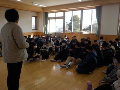 厳しい寒波が続く中でしたが、この日は天候に恵まれ、昼休みに異学年交流「ふれあい班活動」を行いました。冷たい空気の中でも、校庭や体育館には子供たちの元気な声と、輝くような笑顔があふれていました。