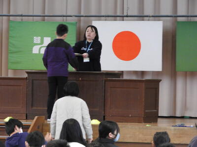 校長先生からは、子供たちのこれまでの成長についてのお話がありました。6年生は、1年生のときにコロナ禍による休校という大きな変化の中で学校生活をスタートさせました。思うように活動できない日々もありましたが、その経験を乗り越え、友達と関わりながら一歩一歩成長してきました。そして、修学旅行などの行事を通して仲間との絆を深め、たくましく成長した姿が称えられました。