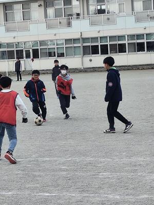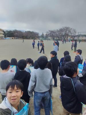 厳しい寒波が続く中でしたが、この日は天候に恵まれ、昼休みに異学年交流「ふれあい班活動」を行いました。冷たい空気の中でも、校庭や体育館には子供たちの元気な声と、輝くような笑顔があふれていました。
