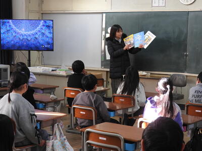 今年度最後となる読み聞かせが、3年生を対象に行われました。お世話になったのは、読み聞かせボランティア「ムーミン」の皆様です。
