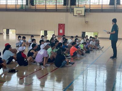 初回の活動では、担当の先生から今年度の目標や練習の進め方について説明があり、「それぞれが目標をもって臨んで欲しいこと」「仲間と支え合い成長していくこと」などが伝えられました。