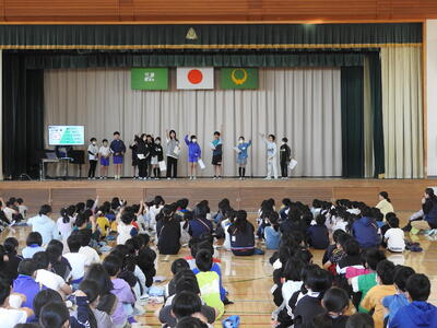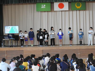 児童集会では、「代表あいさつ委員会」が中心となって、全校児童に「あいさつの大切さ」を伝えてくれました。