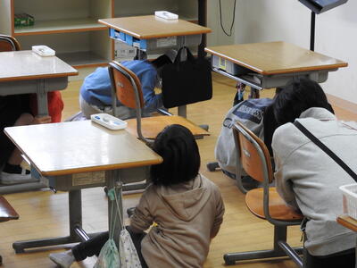 訓練では、まず地震が発生した想定で机の下にもぐる「安全確保」の動作からスタート。その後、火災が発生したという想定で、全校児童が避難経路に従って校庭に集まりました。移動中も私語を慎み、安全に気を配る姿から、一人ひとりの「自分の命を守る意識」が感じられました。