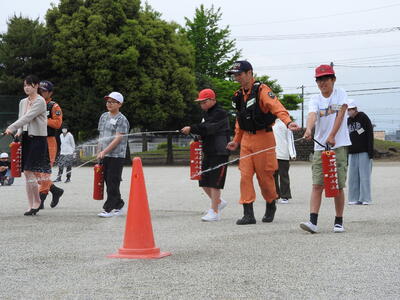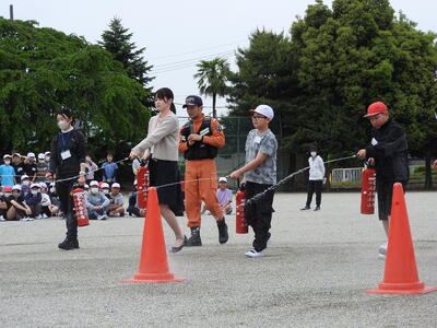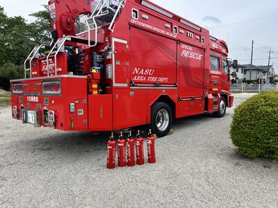 その後は、消火器を使った初期消火訓練も行われました。代表児童と教職員が実際に訓練用の消火器を使い、「火事だー!」の声かけをしながら、火元に向けて消火器を噴射する動作を一つずつ確認。見ていた子供たちも、身を乗り出して学ぶ姿が見られました。