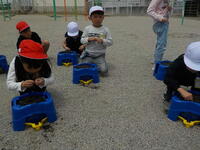 あさがおの種をまきました。「毎日、忘れずにお水をあげるぞー!」と、はりきっていました。