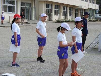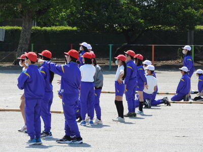 開会式の全体練習が行われました。初めて行う隊列移動や全校ラジオ体操に戸惑いながらも、体育主任や代表児童を中心に一つ一つの動きを確認することができました。
