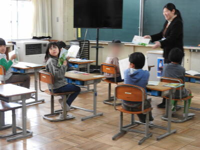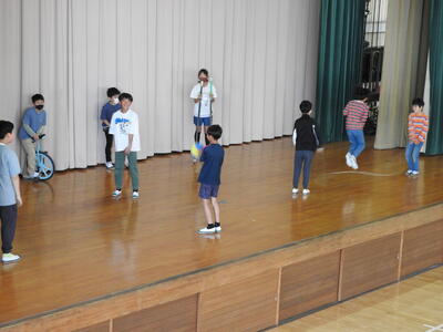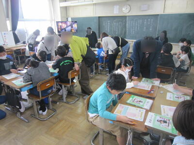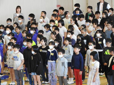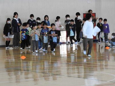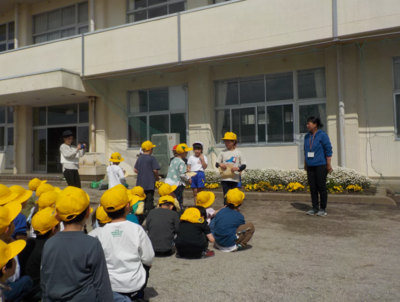 2年生は、校庭いっぱいに横に広がって、一つ一つ石を拾い集めました。「よ~し!もう一度もどるよ~!!」の先生の声に、また一斉に横並びになって石拾いの準備を楽しそうに行っていました。