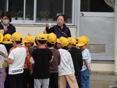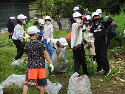 「これ、すごく大きいよ!」「見て見て、こんなに取れた!」と、大きな雑草が取れるたびに友達と見せ合ったり、先生のところへ駆け寄ってうれしそうに報告したりする姿があちこちで見られました。笑顔と笑い声が広がる中、それでも手は休めず、みんな一生懸命。まるで宝探しのように、楽しく作業が進みました。