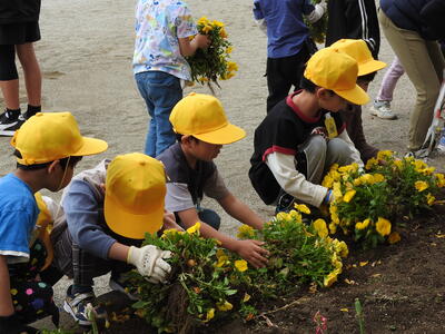 花壇では、咲き終わったパンジーをていねいに抜く作業も行われました。「次はどんな花が植えられるのかな?」と、楽しみに話しながら作業を進める姿がどの学年でも見られました。