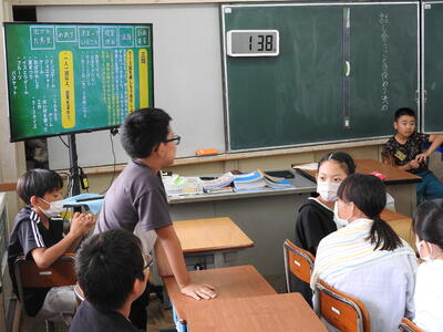 5年生では「夏を楽しもう会をしよう!」をテーマに、学級会を開きました。これからやってくる夏を、みんなで笑顔で過ごせるようにと、子供たち自身がアイデアを出し合い、話し合いを進めました。