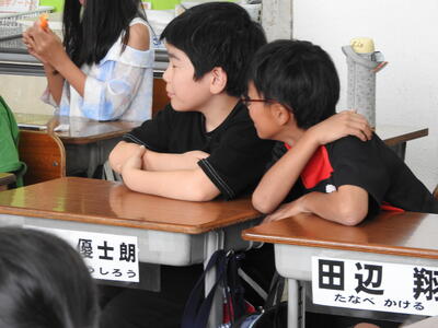 1984年(昭和59年)に友好親善都市提携を結びました。児童の交歓交流は1992年(平成4年)から始められました。本校と西江原小学校との作品交流は1988年(昭和63年)より始められ、36年間続いています。