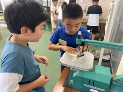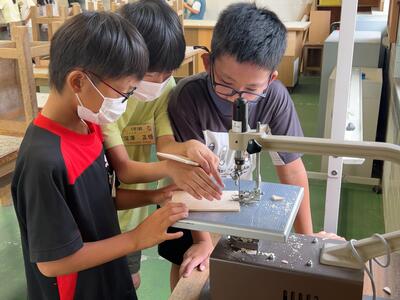 初めて使う児童が多いので、はじめは不安そうな表情を見せていた子供たちも、先生や友達と確認し合いながら、安全に気をつけて作業を進めていました。