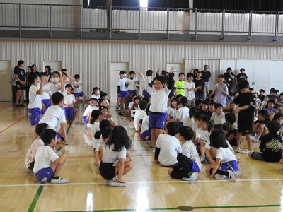 今朝は、全校で取り組んでいる異学年交流活動を行いました。それぞれの学年ブロックごとに、子供たち自身が内容を話し合い、企画から運営まで行った活動です。朝のさわやかな時間に、笑顔と元気が校内に広がりました。