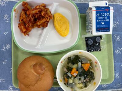 今日の給食にはこの「ペンネ・リガーテ」を使いました。