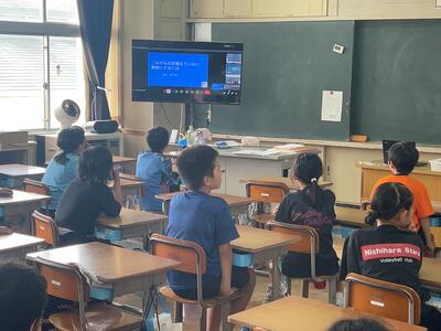 1984年(昭和59年)に友好親善都市提携を結びました。児童の交歓交流は1992年(平成4年)から始められました。本校と西江原小学校との作品交流は1988年(昭和63年)より始められ、36年間続いています。