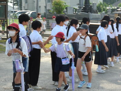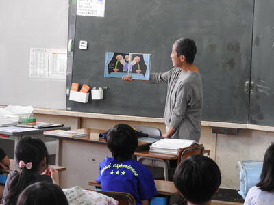 1984年(昭和59年)に友好親善都市提携を結びました。児童の交歓交流は1992年(平成4年)から始められました。本校と西江原小学校との作品交流は1988年(昭和63年)より始められ、36年間続いています。