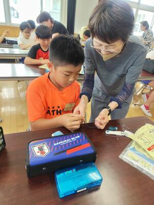 5年生の家庭科の裁縫実習において、PTAボランティア部の皆さまと地域のボランティアの皆さまに御協力をいただきました。