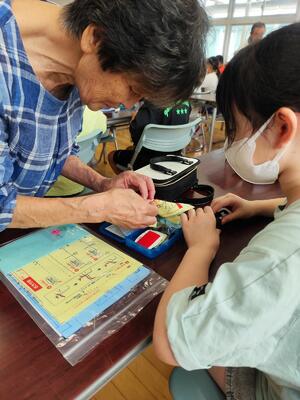 実習では、玉結びや玉留めといった基本的な手縫いの技術を練習しました。最初は少し緊張した様子でしたが、ボランティアの皆さまが一人ひとりにやさしく声をかけ、手元をていねいに見てくださったおかげで、子供たちも安心して取り組むことができました。