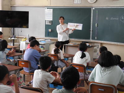 今朝は、子供たちが毎回楽しみにしている図書ボランティアさんによる読み聞かせが行われました。