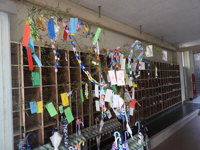 「家族が元気に過ごせますように」「かけっこがはやくなりたい」「〇〇になれますように」――子供たちのまっすぐな思いがこもった短冊は、教室や廊下に飾られ、風に揺れるたびにやさしく願いを届けてくれているようです。
