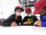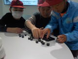 ワークショップでは、色玉をグラデーションになるように協力して、並び変えました。