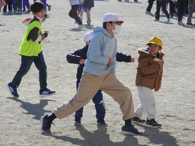 交流遊びでは、高学年が低学年の歩幅に合わせて走ったり、「こっちだよ」と声をかけたりする姿が見られました。うまくいかない場面でも「大丈夫、もう一回やろう」と励まし合い、自然と輪が広がっていました。