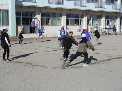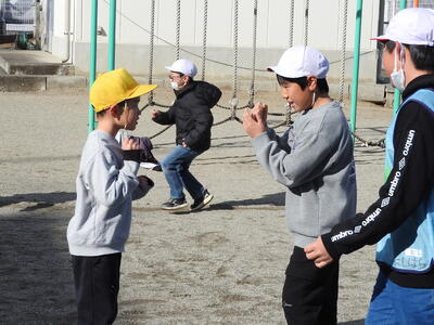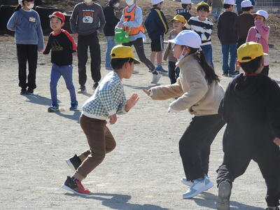 厳しい寒波が続く中でしたが、この日は天候に恵まれ、昼休みに異学年交流「ふれあい班活動」を行いました。冷たい空気の中でも、校庭や体育館には子供たちの元気な声と、輝くような笑顔があふれていました。